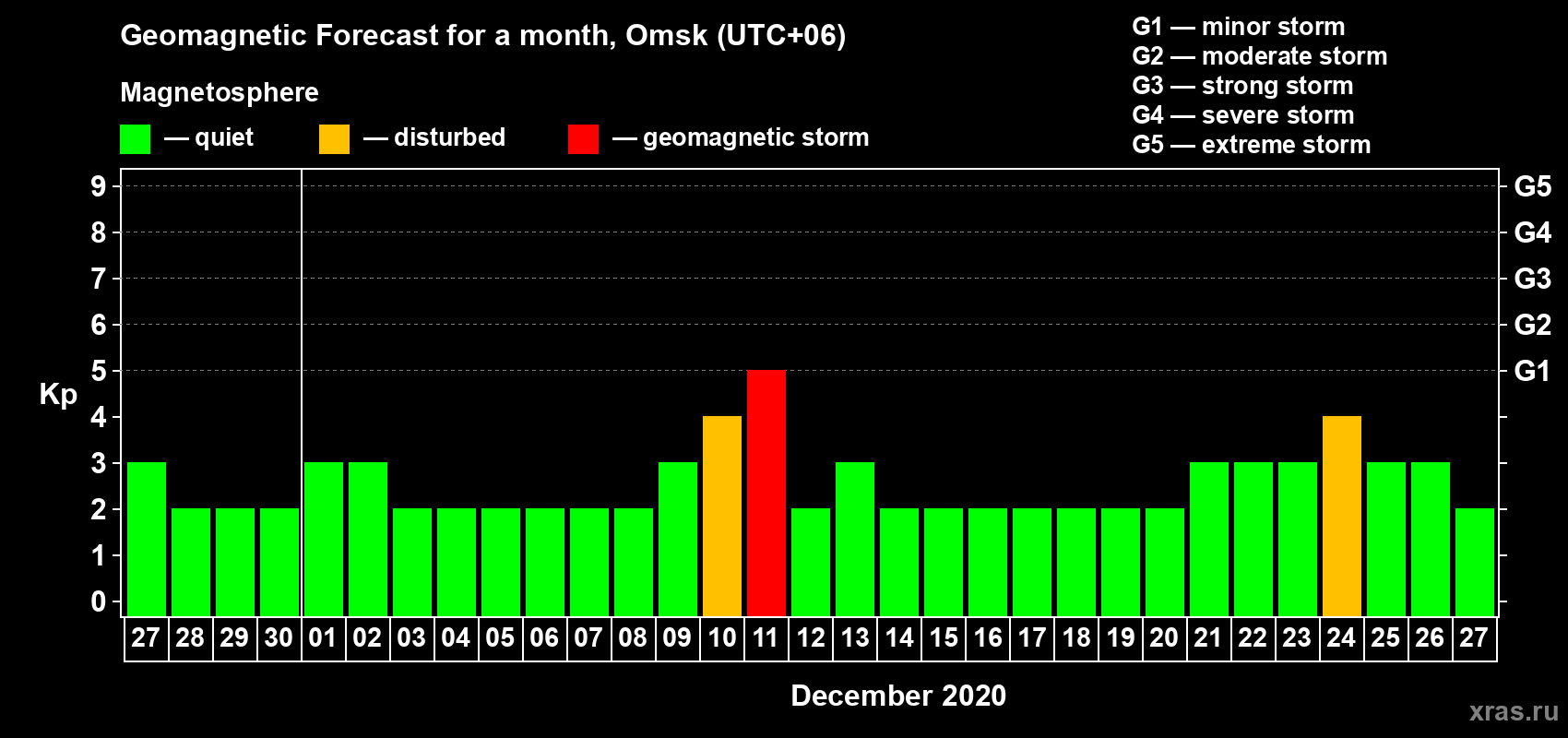Geomagnetic storm forecast in Omsk for Nov 27, 2020