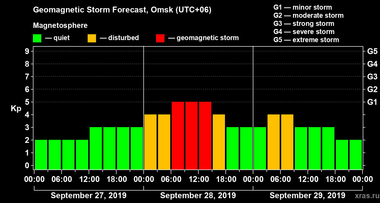 Geomagnetic storm forecast in Omsk for Sep 27, 2019