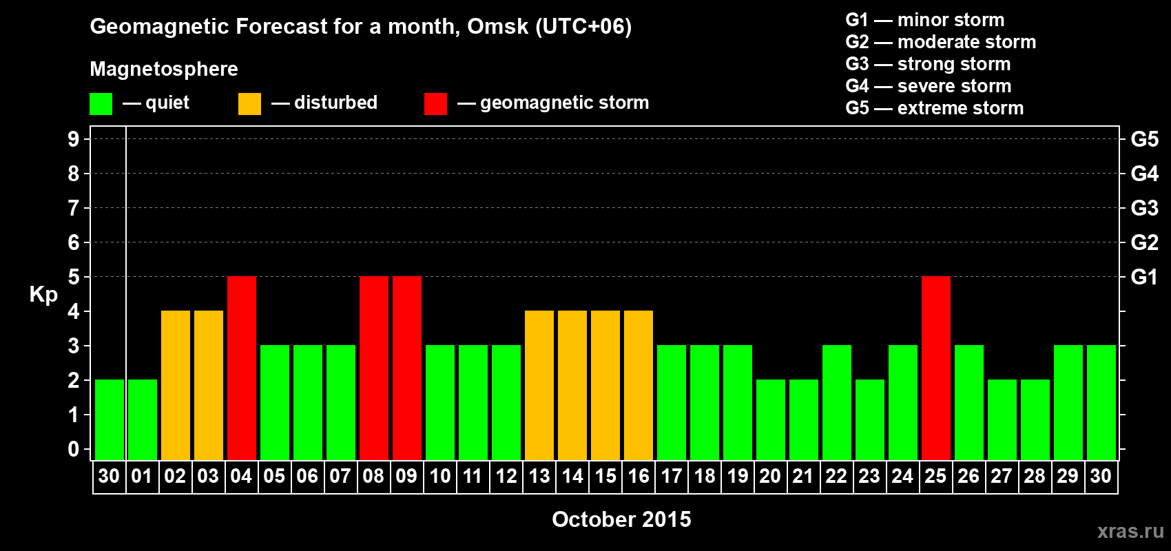 Geomagnetic storm forecast in Omsk for Sep 30, 2015