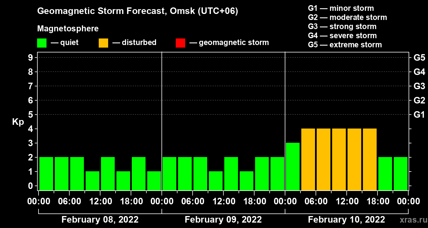 Geomagnetic storm forecast in Omsk for Feb 08, 2022