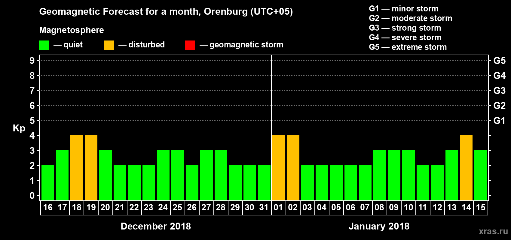 Geomagnetic storm forecast in Orenburg for Dec 16, 2017