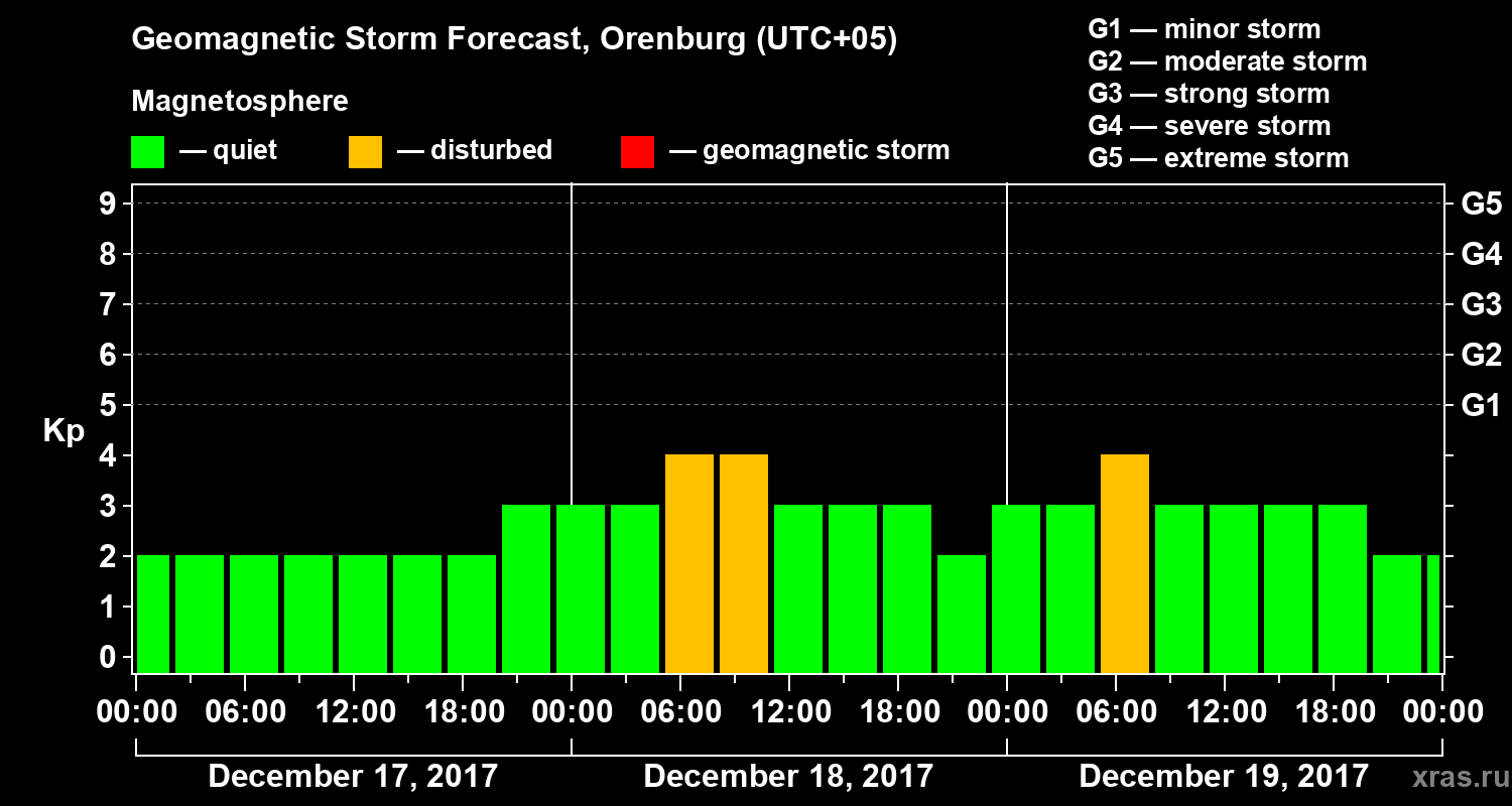 Geomagnetic storm forecast in Orenburg for Dec 17, 2017