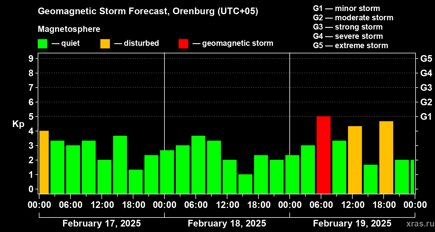 Geomagnetic storm forecast in Orenburg for Feb 17, 2025