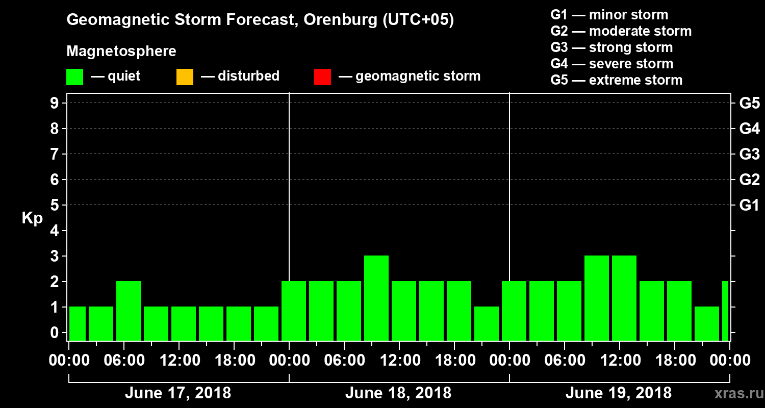 Geomagnetic storm forecast in Orenburg for Jun 17, 2018