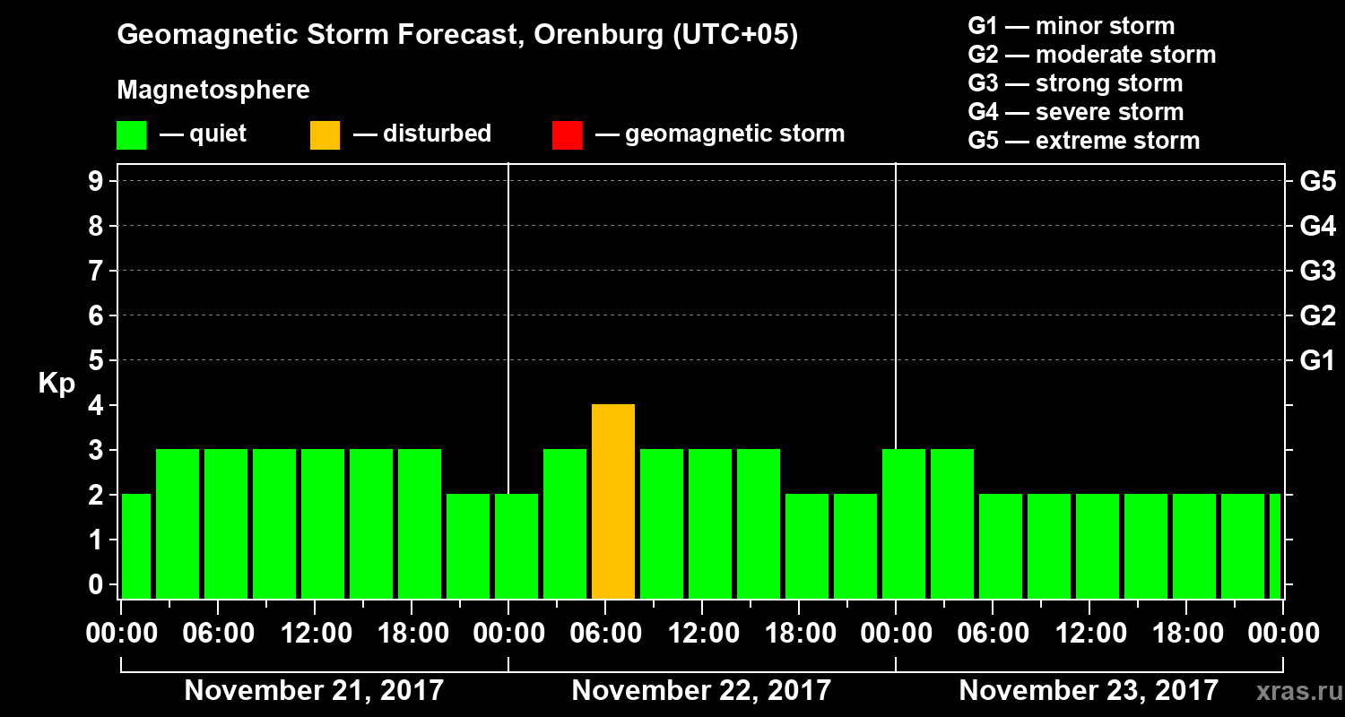 Geomagnetic storm forecast in Orenburg for Nov 21, 2017
