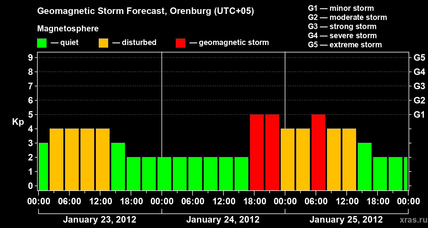 Geomagnetic storm forecast in Orenburg for Jan 23, 2012