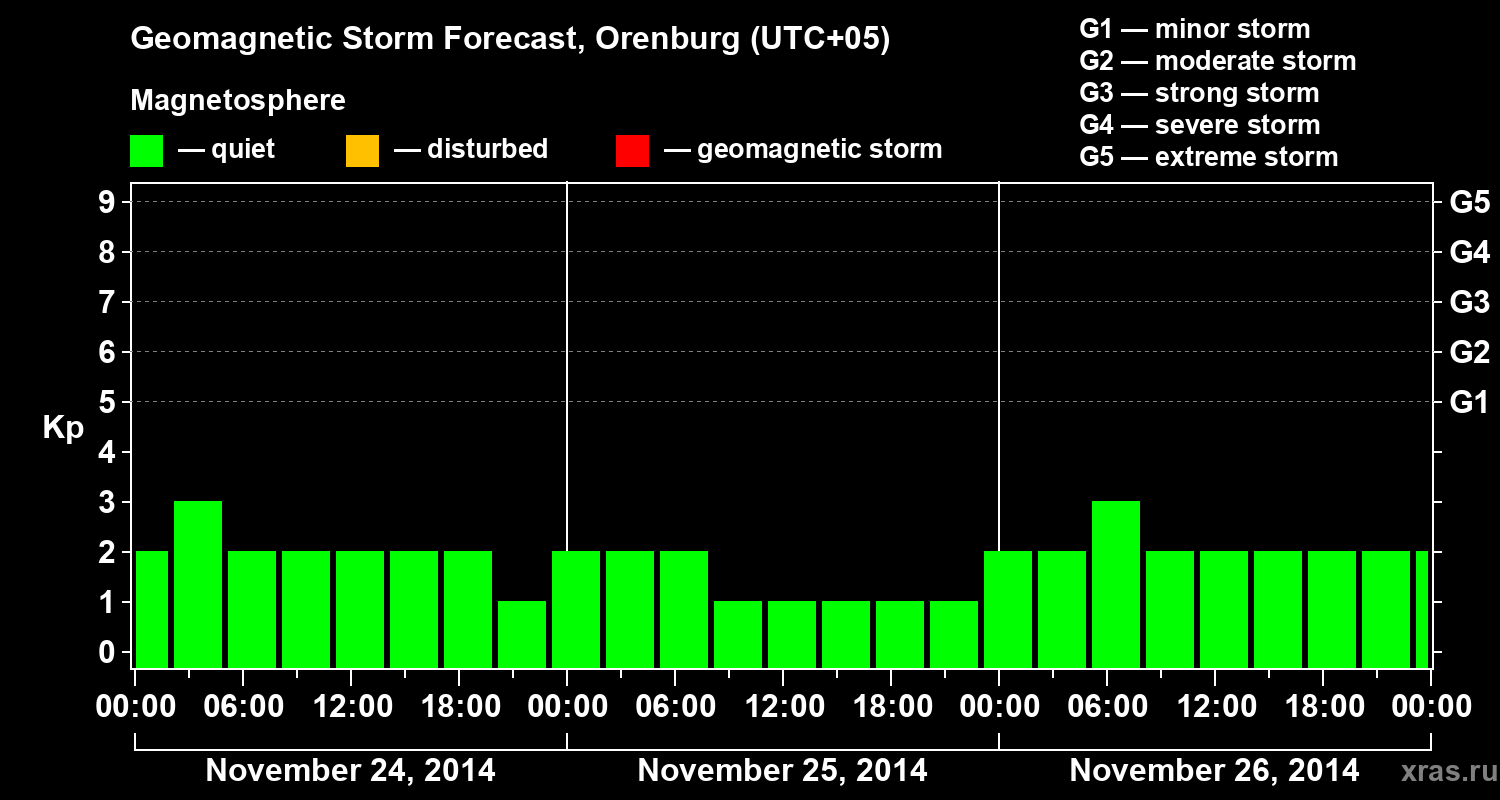 Geomagnetic storm forecast in Orenburg for Nov 24, 2014