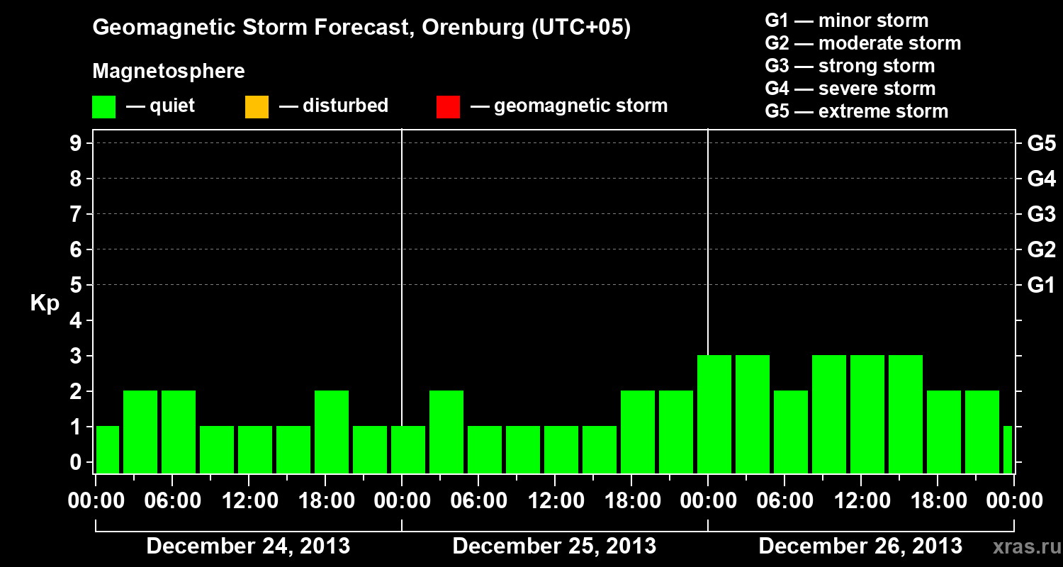 Geomagnetic storm forecast in Orenburg for Dec 24, 2013