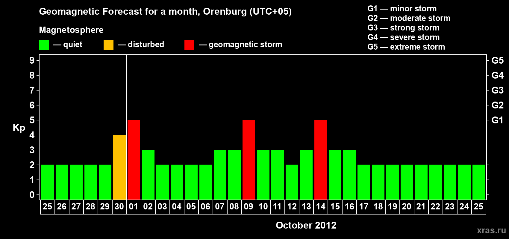 Geomagnetic storm forecast in Orenburg for Sep 25, 2012