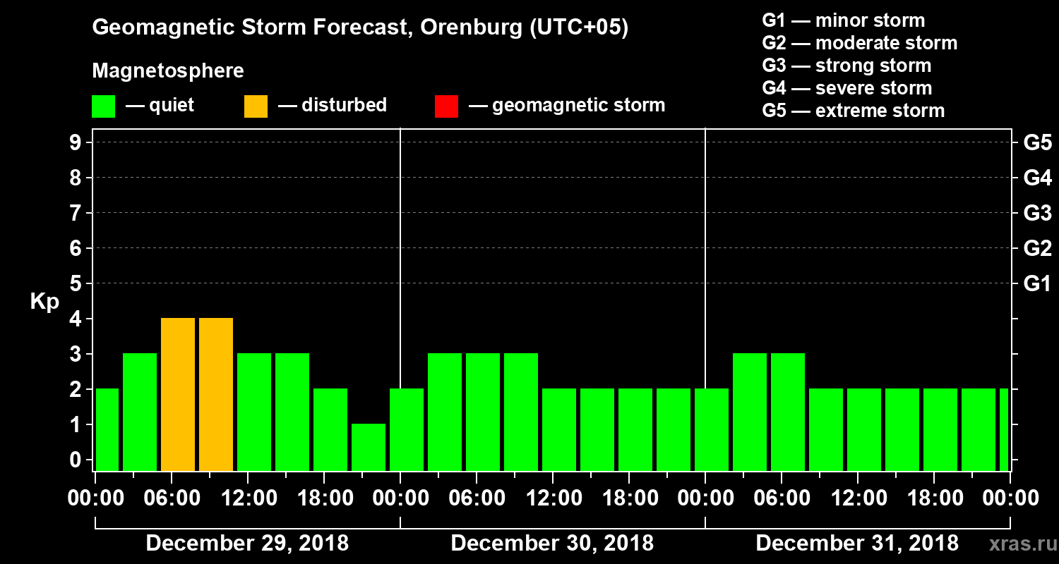 Geomagnetic storm forecast in Orenburg for Dec 29, 2018