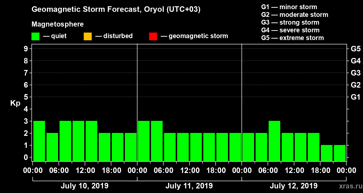 Geomagnetic activity forecast in Oryol — Jul 10, 2019