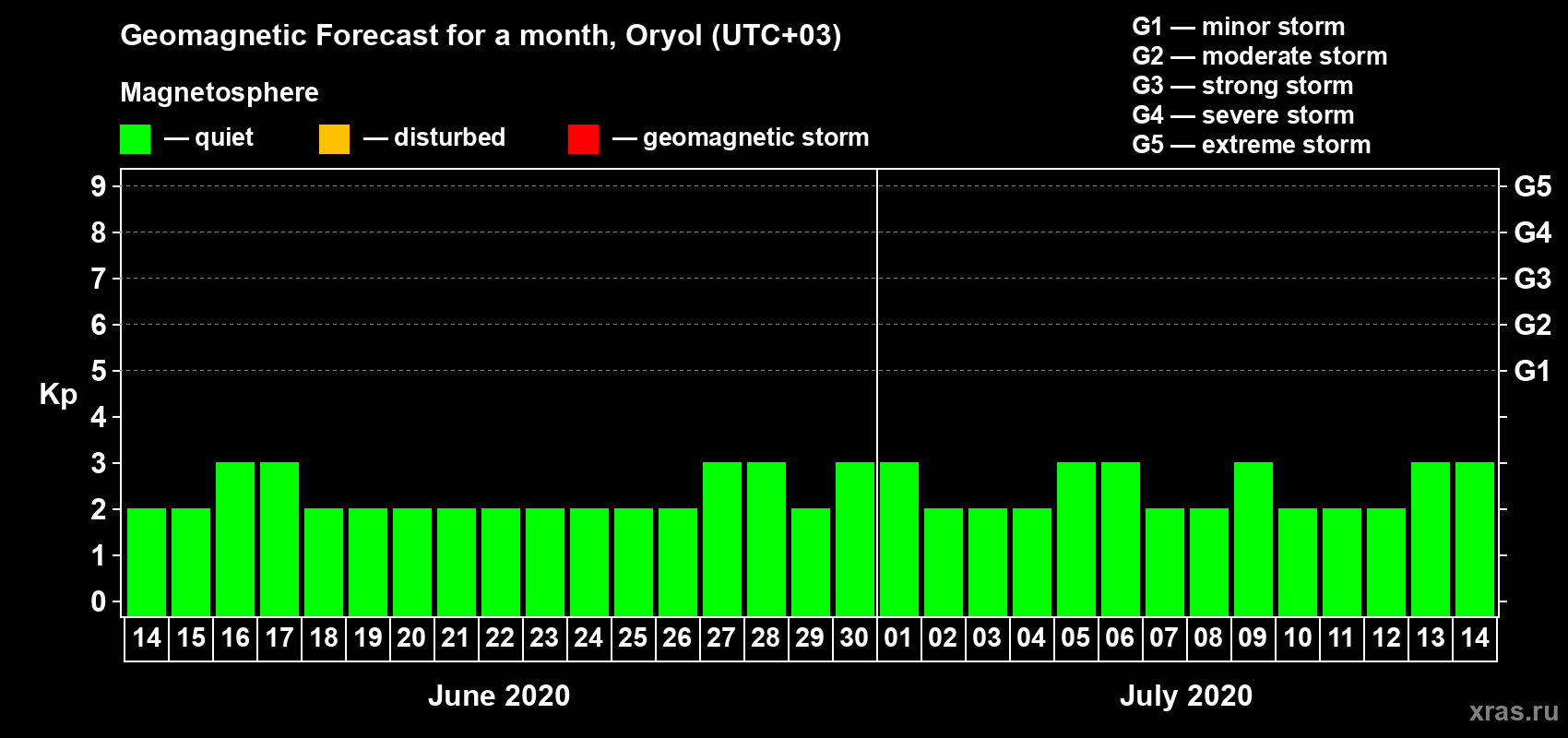Geomagnetic storm forecast in Oryol for Jun 14, 2020