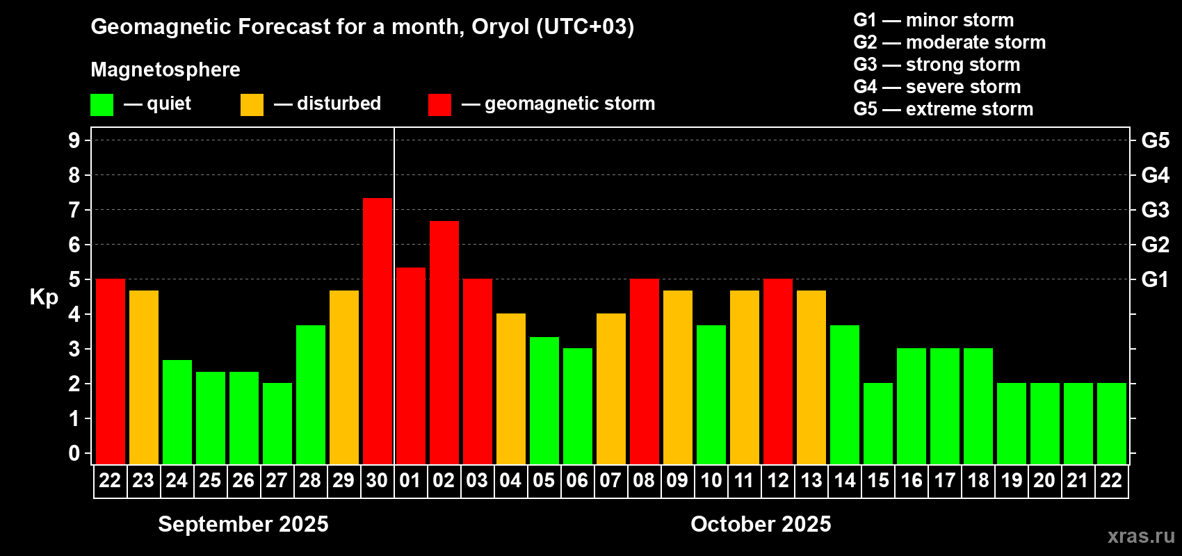 Geomagnetic storm forecast in Oryol for Sep 22, 2025