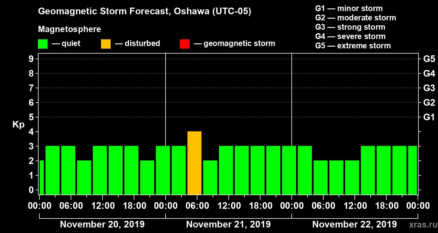 Geomagnetic storm forecast in Oshawa for Nov 20, 2019