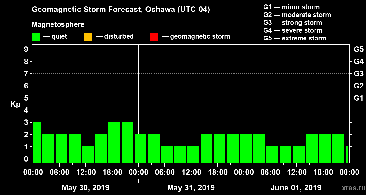 Geomagnetic activity forecast in Oshawa — May 30, 2019