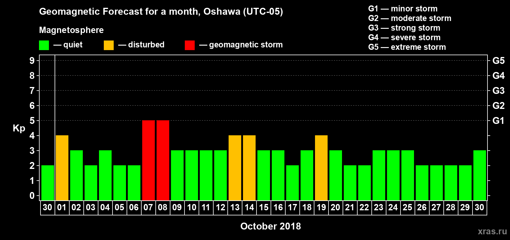 Geomagnetic storm forecast in Oshawa for Sep 30, 2018
