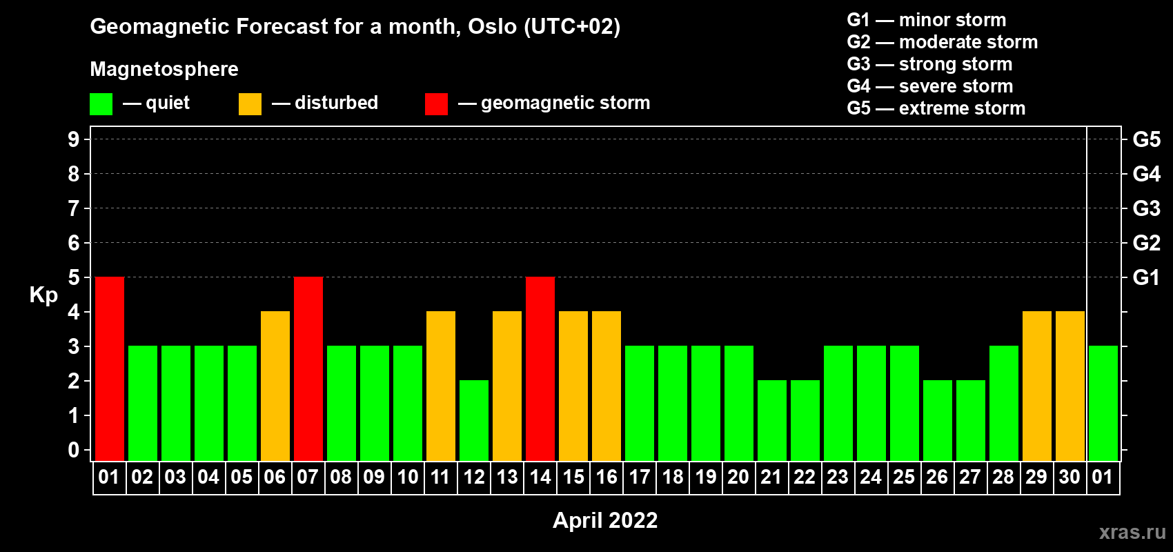 Geomagnetic storm forecast in Oslo for Apr 01, 2022