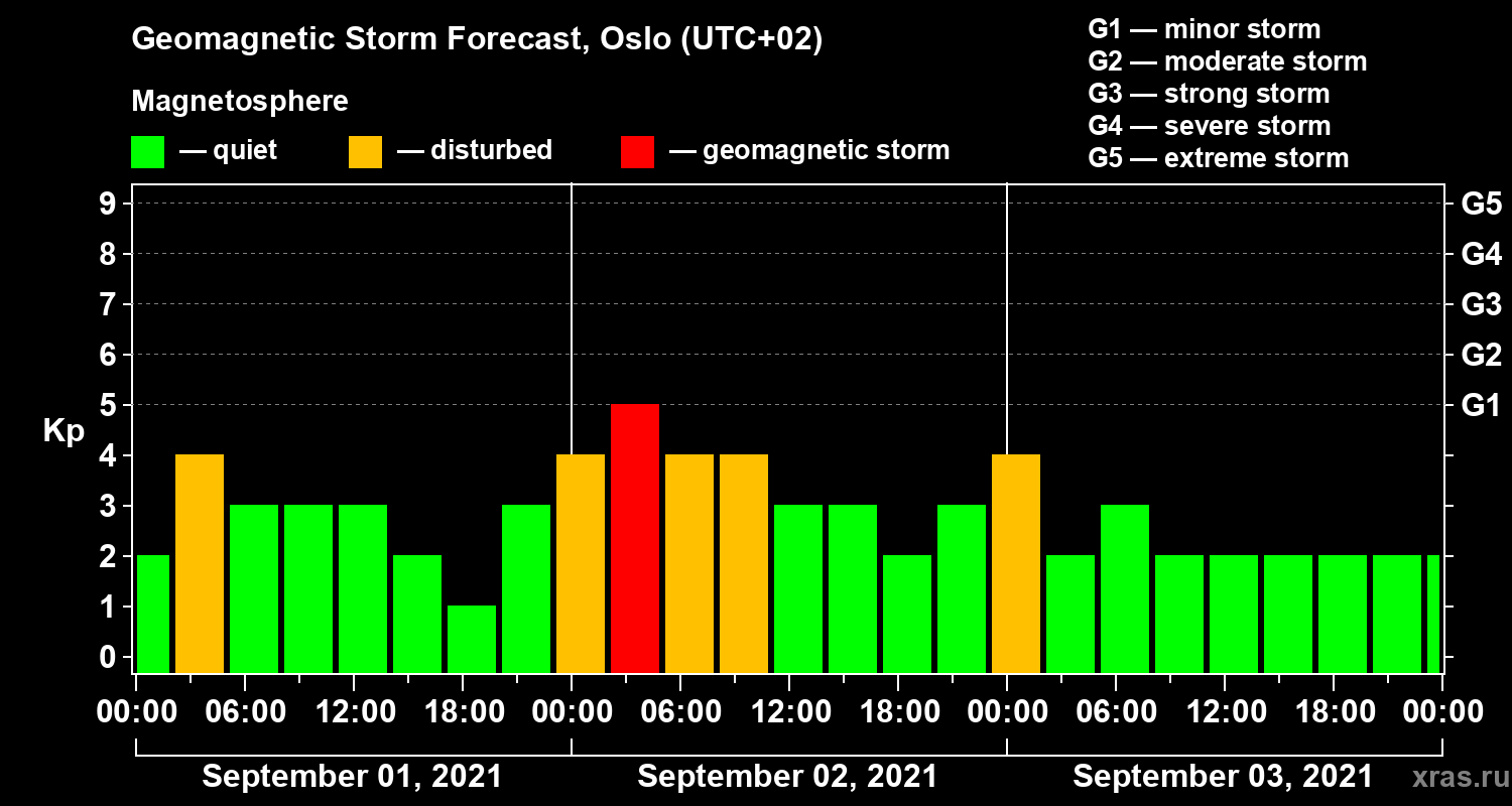 Geomagnetic storm forecast in Oslo for Sep 01, 2021