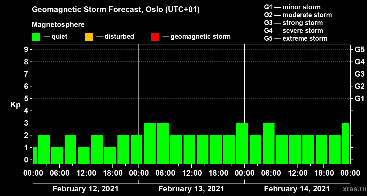 Geomagnetic storm forecast in Oslo for Feb 12, 2021