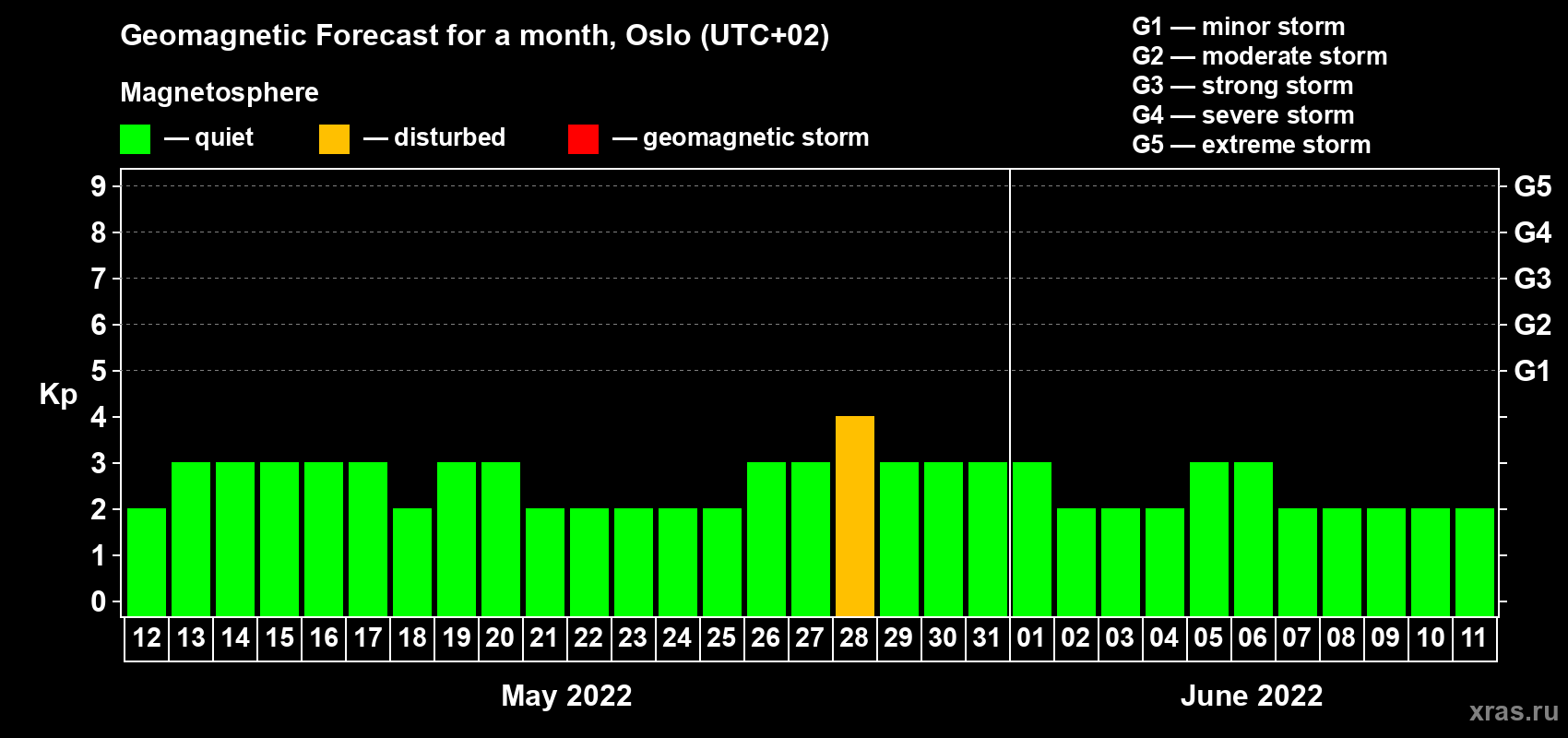 Geomagnetic storm forecast in Oslo for May 12, 2022