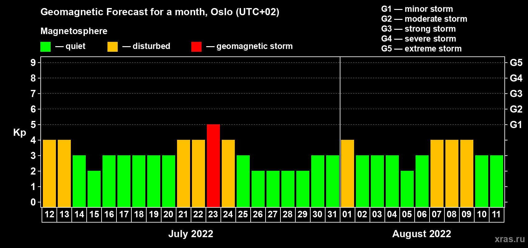 Geomagnetic storm forecast in Oslo for Jul 12, 2022