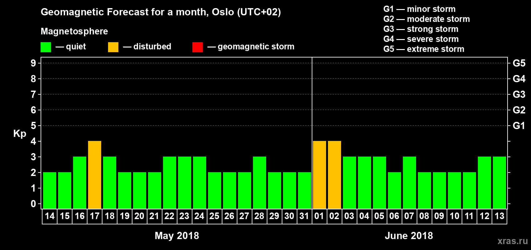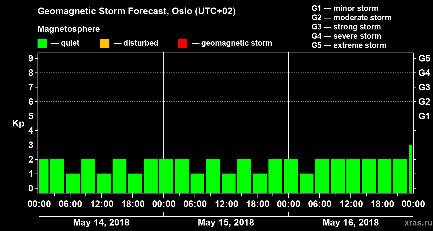 Geomagnetic storm forecast in Oslo for May 14, 2018