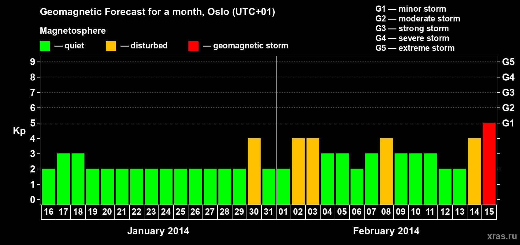 Geomagnetic storm forecast in Oslo for Jan 16, 2014