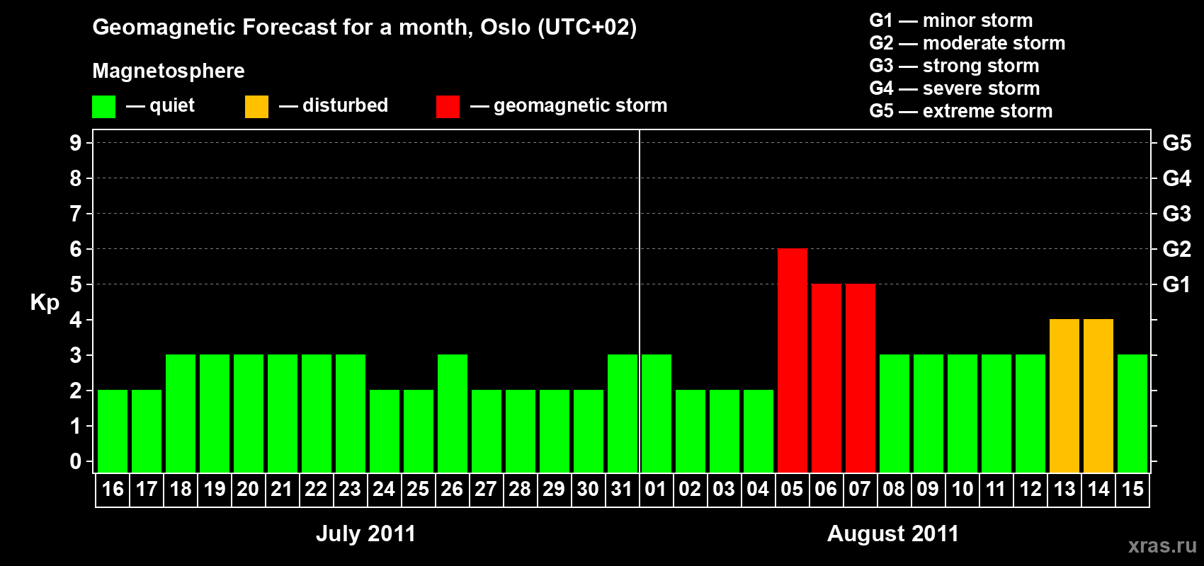 Geomagnetic storm forecast in Oslo for Jul 16, 2011