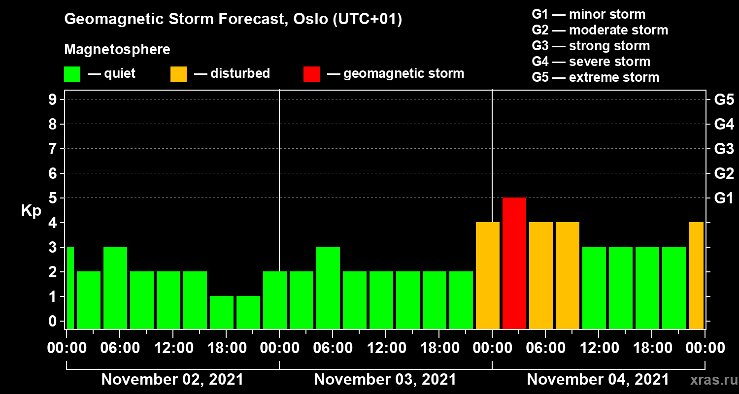 Geomagnetic storm forecast in Oslo for Nov 02, 2021