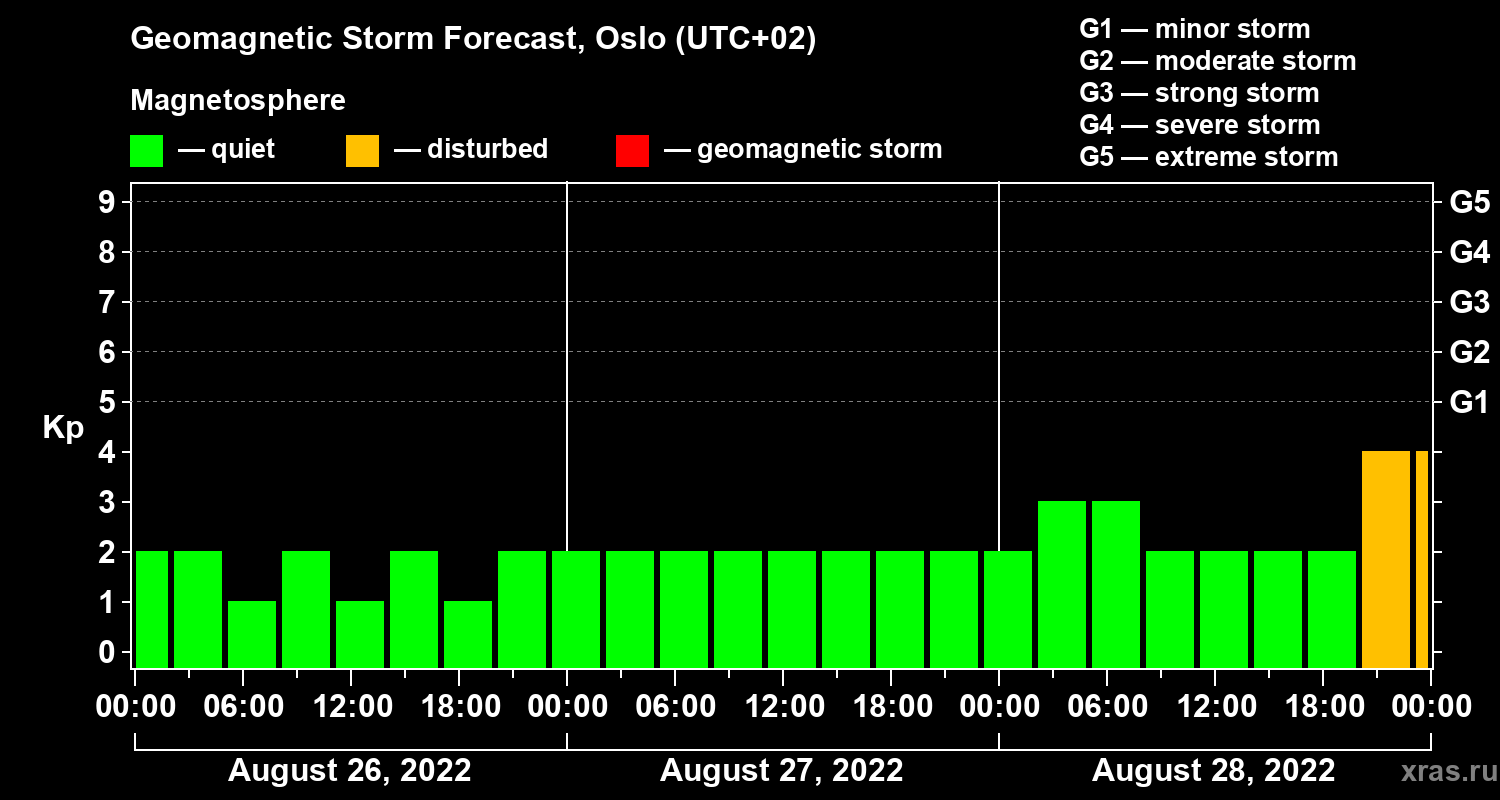Geomagnetic storm forecast in Oslo for Aug 26, 2022