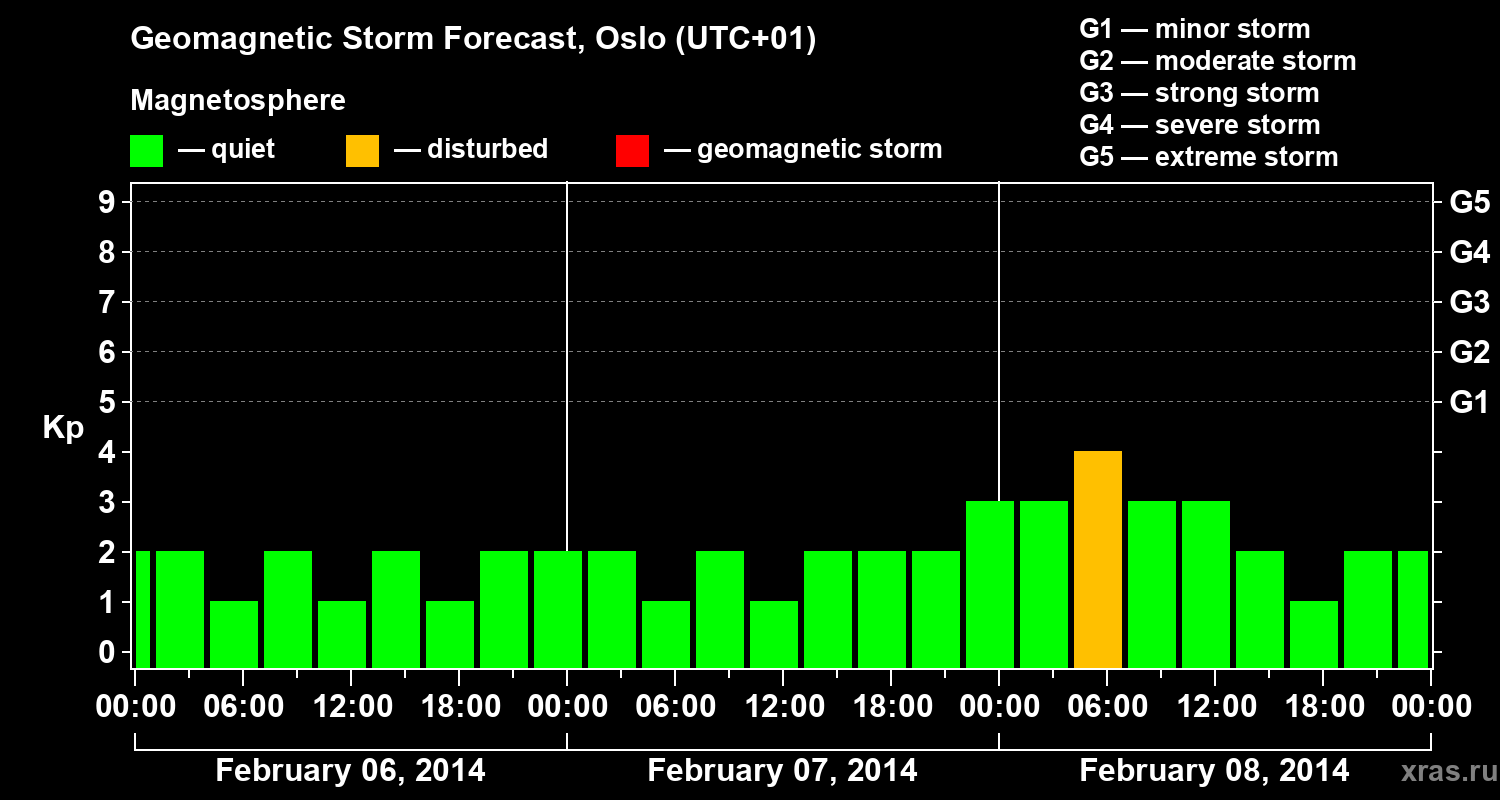 Geomagnetic storm forecast in Oslo for Feb 06, 2014