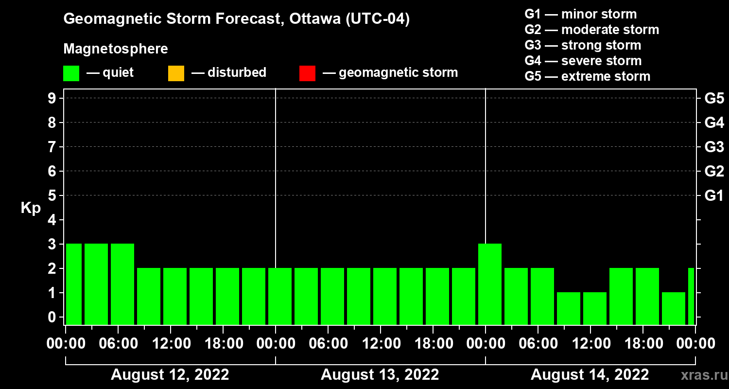 Geomagnetic activity forecast in Ottawa — Aug 12, 2022