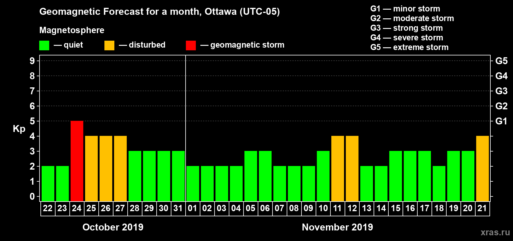 Geomagnetic storm forecast in Ottawa for Oct 22, 2019
