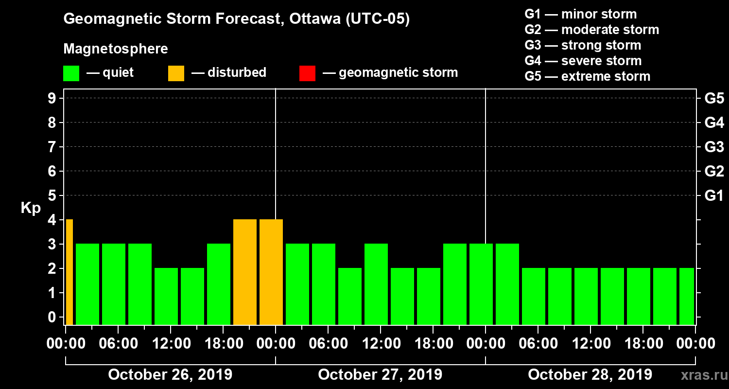 Geomagnetic storm forecast in Ottawa for Oct 26, 2019