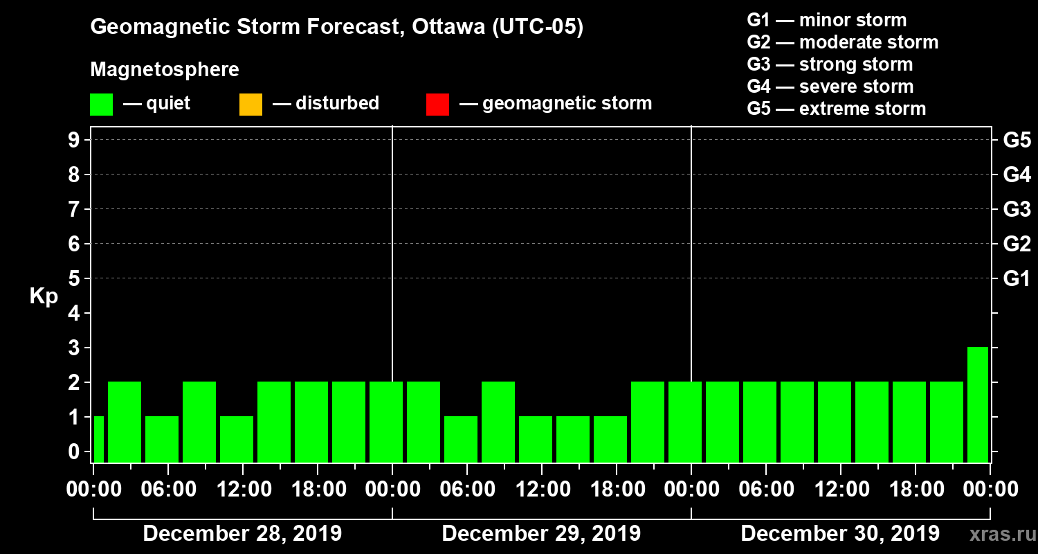 Geomagnetic storm forecast in Ottawa for Dec 28, 2019