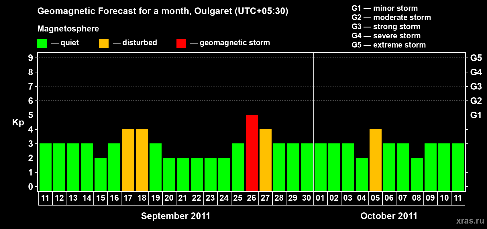 Geomagnetic storm forecast in Oulgaret for Sep 11, 2011