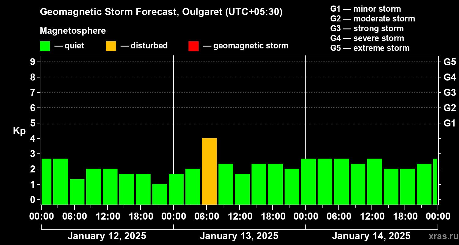 Geomagnetic storm forecast in Oulgaret for Jan 12, 2025