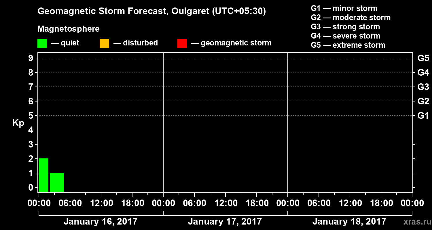 Geomagnetic storm forecast in Oulgaret for Jan 16, 2017
