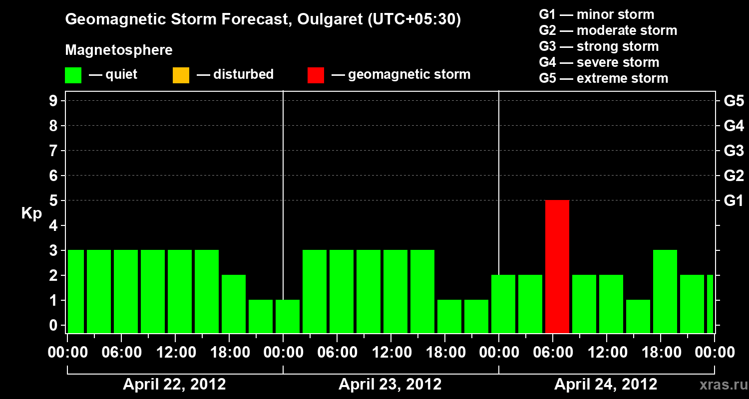 Geomagnetic storm forecast in Oulgaret for Apr 22, 2012