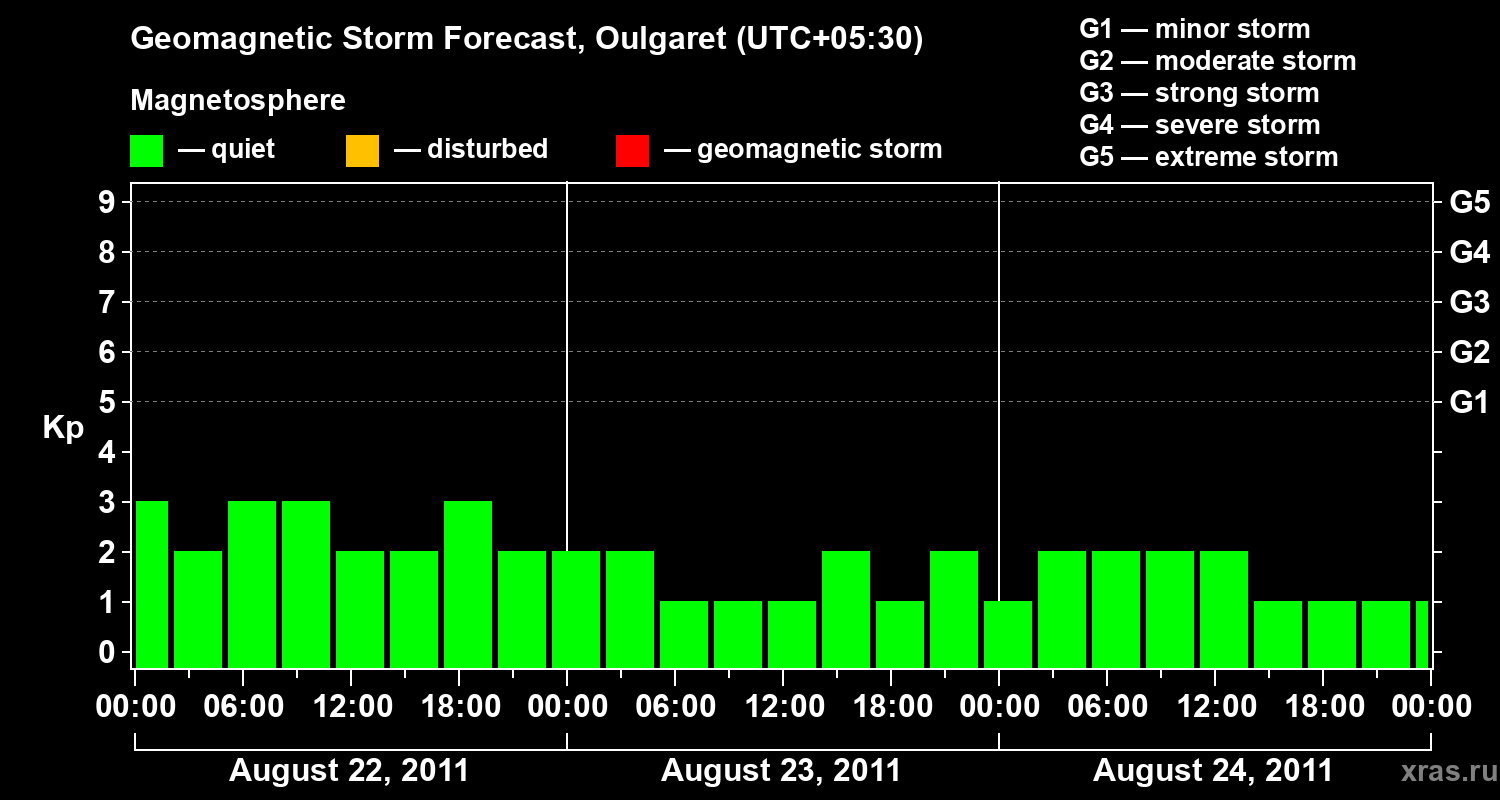 Geomagnetic storm forecast in Oulgaret for Aug 22, 2011