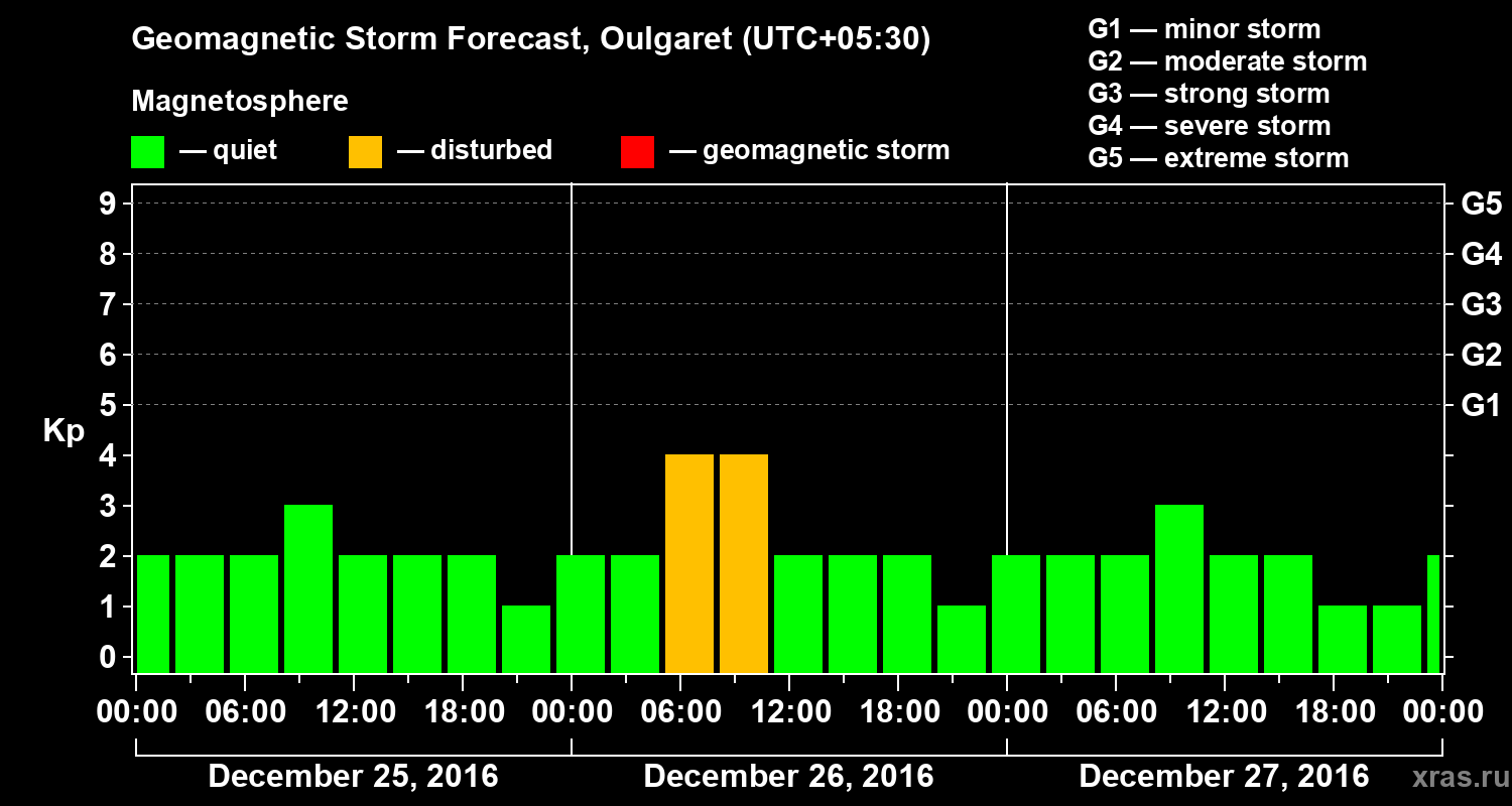Geomagnetic storm forecast in Oulgaret for Dec 25, 2016