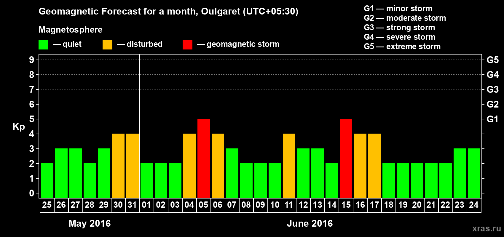 Geomagnetic storm forecast in Oulgaret for May 25, 2016