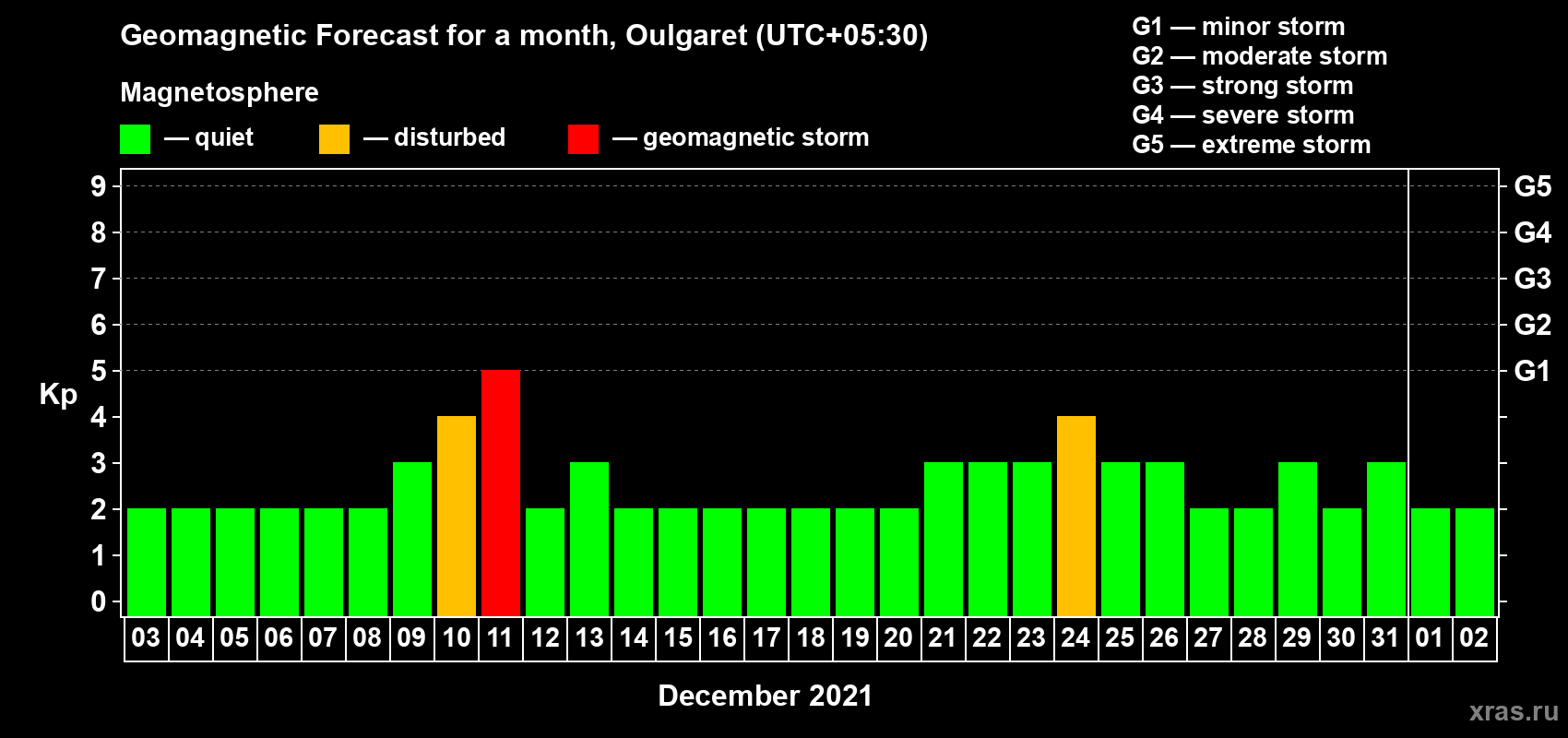 Geomagnetic activity forecast in Oulgaret — Dec 03, 2020