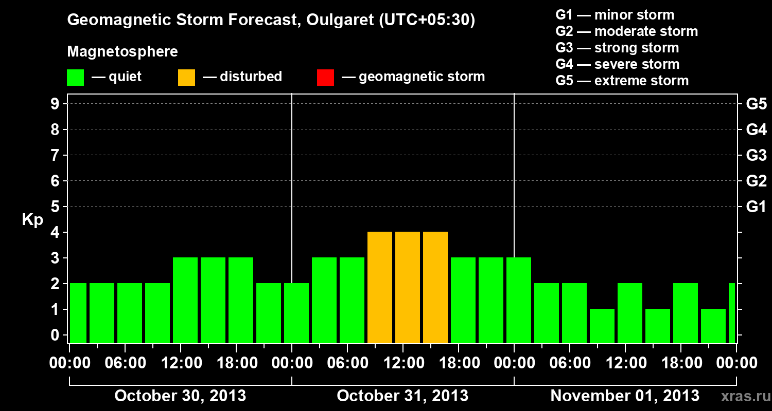 Geomagnetic storm forecast in Oulgaret for Oct 30, 2013