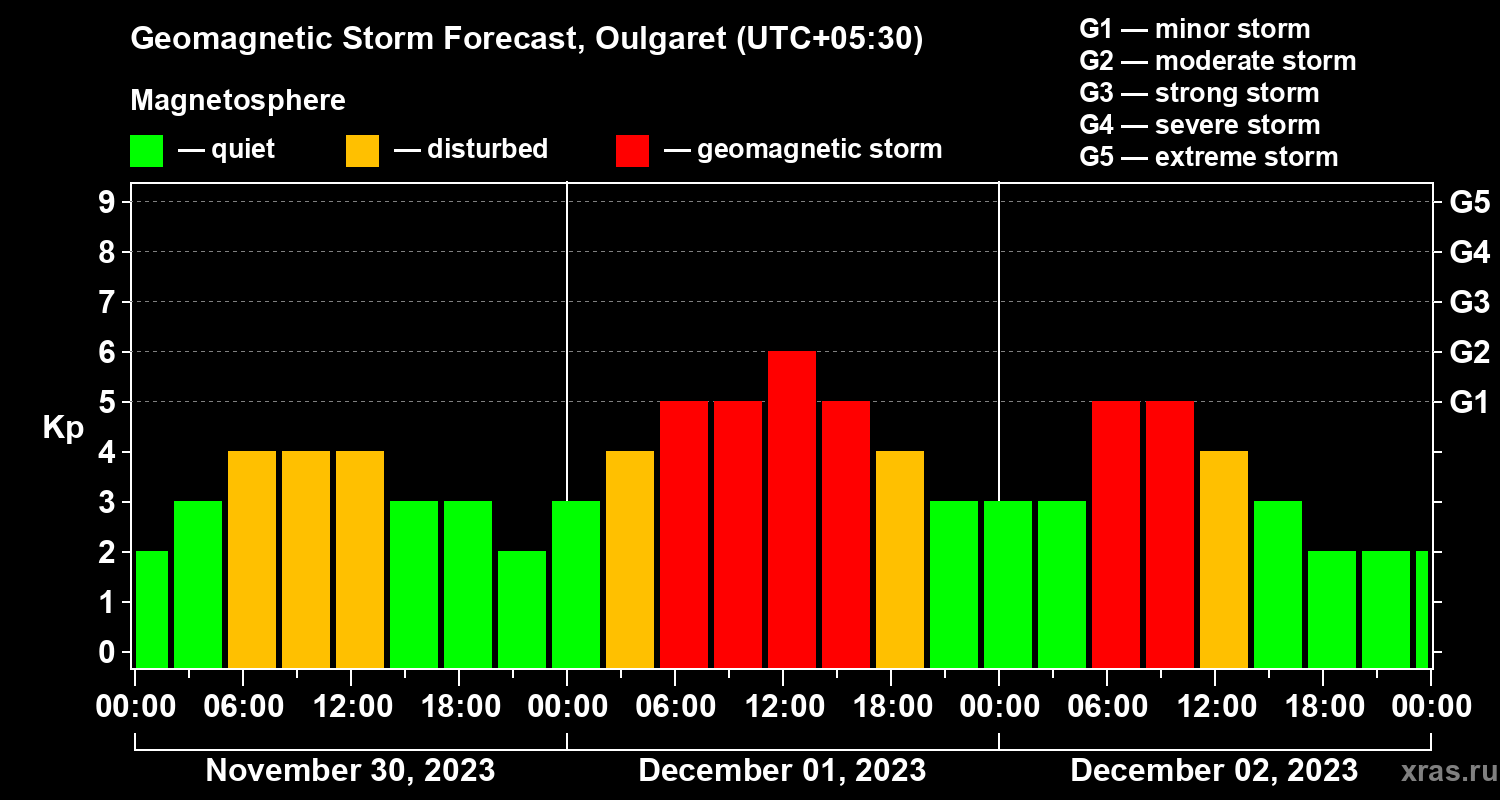 Geomagnetic storm forecast in Oulgaret for Nov 30, 2023