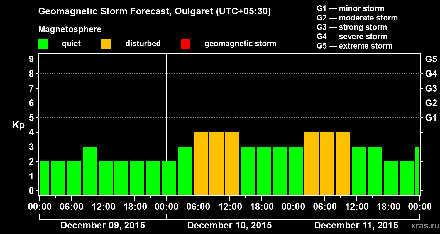 Geomagnetic storm forecast in Oulgaret for Dec 09, 2015