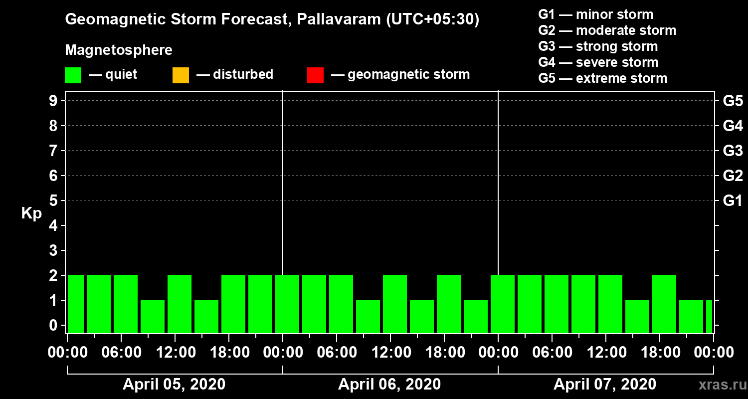 Geomagnetic storm forecast in Pallavaram for Apr 05, 2020