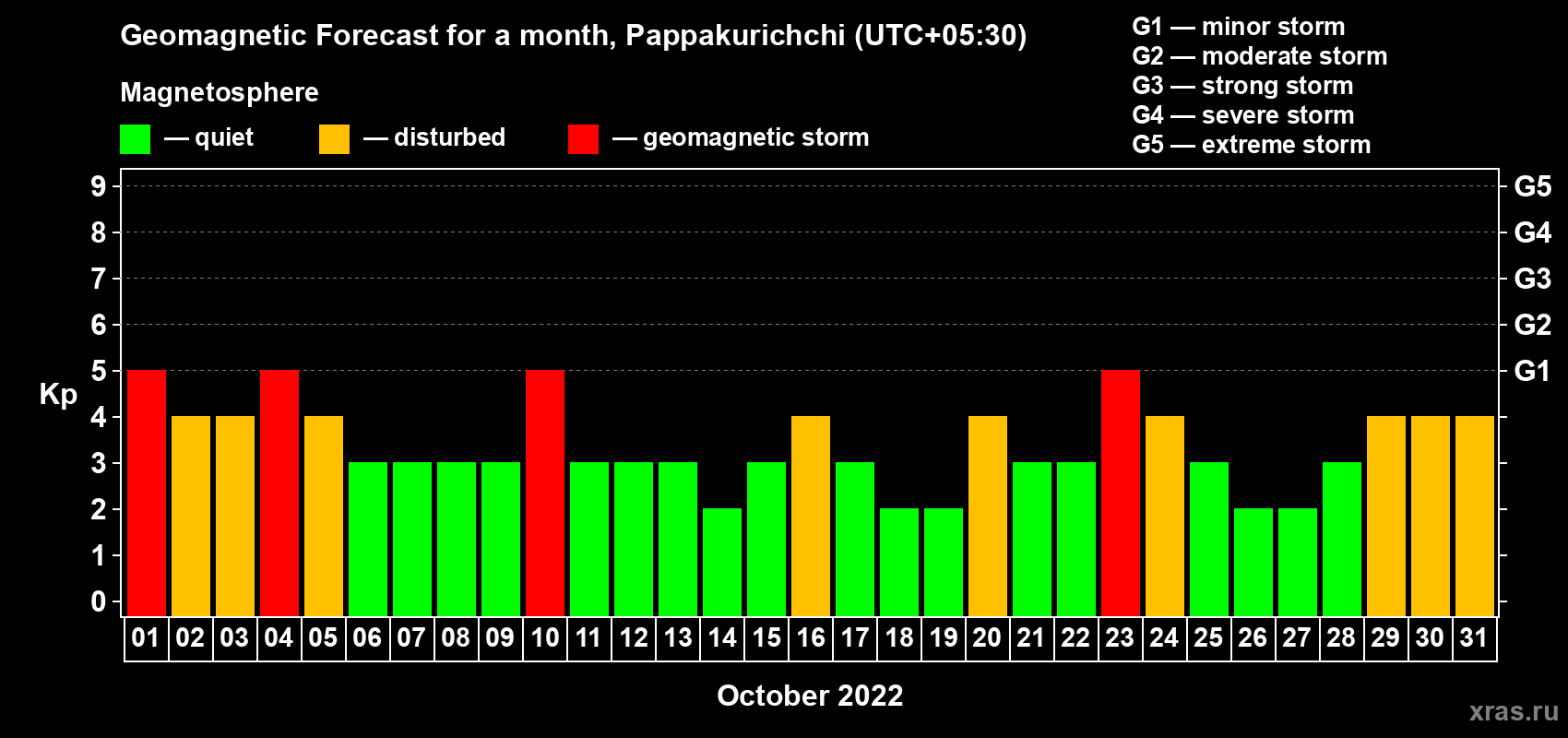 Geomagnetic storm forecast in Pappakurichchi for Oct 01, 2022