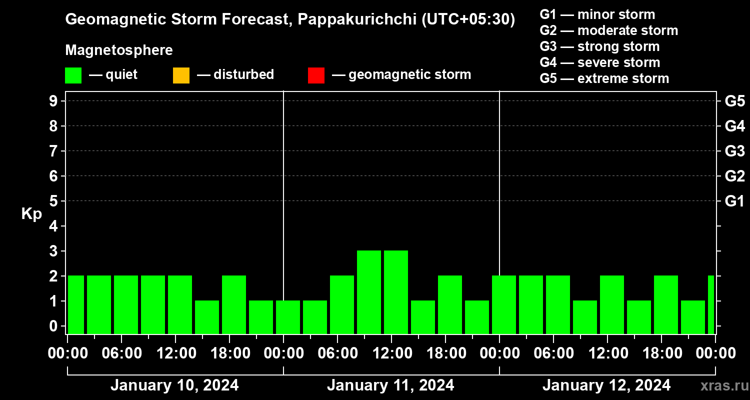 Geomagnetic storm forecast in Pappakurichchi for Jan 10, 2024
