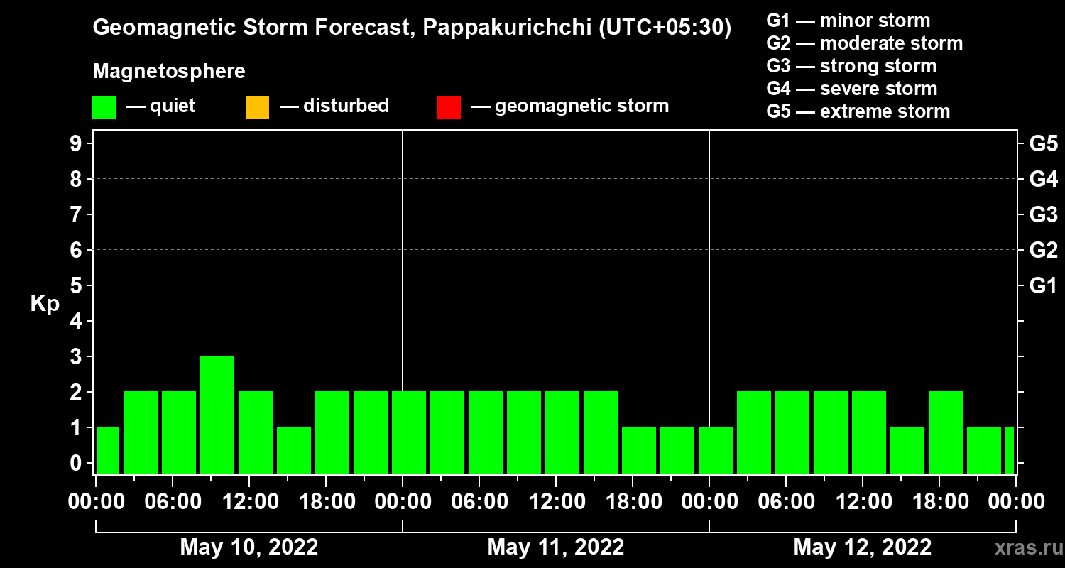 Geomagnetic storm forecast in Pappakurichchi for May 10, 2022